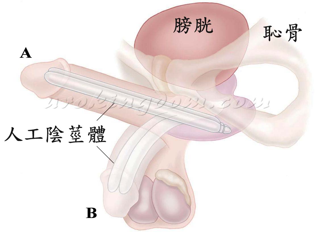 不管是任何原因引起的勃起功能障礙,如果其他的治療方法都失效,人工陰莖植入手術就是最終有效的一個治療方式。人工陰莖植入手術就是將人工陰莖體植入陰莖海綿體內,取代充血鼓脹的海綿體,但仍包覆在陰莖白膜內,使陰莖達到足夠的硬度能從事正常性行為,外觀仍與正常陰莖相差無幾,觸感也接近自然。