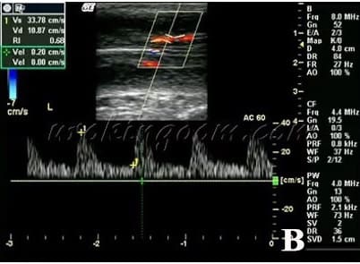 陰莖都卜勒超音波檢查特別用於評估觀察陰莖勃起功能,測量陰莖的血流參數,了解動脈血流情形,是否存在有陰莖動脈灌流不足造成動脈性勃起功能障礙或陰莖靜脈滲漏性勃起功能障礙等問題(圖1B)。