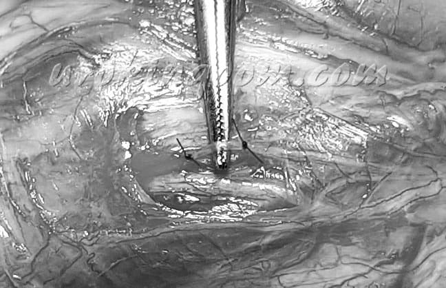 源於醫學文獻報告的選擇性背神經阻斷手術並加以改良,微創選擇性背神經阻斷手術是應用精細的顯微手術技巧阻斷部分背神經分支,以治療因陰莖過度敏感而導致的早洩,在局部麻醉下進行。手術時採平躺姿勢,於陰莖深部及周圍使用創新的雙重局部麻醉方法,延長有效麻醉時間。手術時在龜頭冠狀溝下方選擇適當位置將包皮切出一道環狀傷口並將包皮褪下,小心游離傷口內面筋膜組織,需保留鄰近血管及正常組織。在陰莖兩側選擇部分的背神經分支,仔細小心分離且避免傷害鄰近組織,以細線綁紮並截斷分離出的背神經分支,阻斷部分神經傳導,降低神經的敏感度以延遲射精時間(圖二)。最後使用可吸收微細縫線縫合傷口,完成手術。