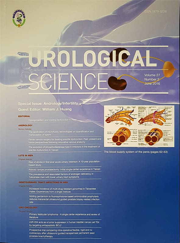 Hsieh CH (謝政興), Hsieh JT, Chang SJ, Chiang IN, Yang SSD. Penile venous surgery for treating erectile dysfunction: past, present, and future perspectives with regard to new insights in venous anatomy (陰莖靜脈手術治療勃起功能障礙的過去,現在與未來:關於陰莖靜脈解剖學的新見解). Urological Science. 27(2):60-65, 2016.