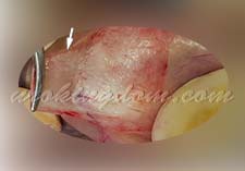 Figure 1. The microsurgical circumcision begins with natural oblique oval incision made below the glans: