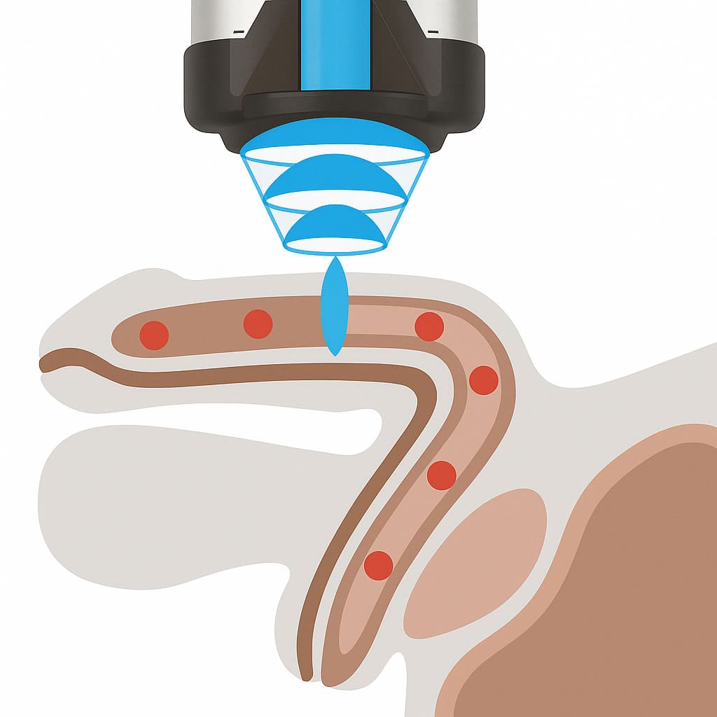 この治療法は、衝撃波プローブを使用して、陰茎の組織に低出力の音波を直接照射するものです。
