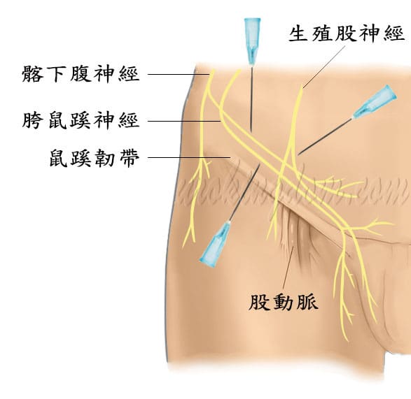 半身麻酔には、脊髄麻酔(spinal anesthesia)および硬膜外麻酔(epidural anesthesia)があります。麻酔薬を脊髄空間内または硬膜外腔内に注入して神経伝達を遮断し、手術中に痛みを感じないようにします。患者は手術中に意識を保ちます。通常、下腹部や下肢の手術、例えば泌尿器科手術、産婦人科手術、ヘルニア手術などに適用されます。脊髄麻酔は、麻酔薬を注入した後、麻酔の高さを調節することが困難であり、麻酔時間は約2〜3時間程度で、長時間の手術には適していません。一方、硬膜外麻酔の技術は高度で、長時間の手術に適用され、呼吸機能や血圧の変化に対する影響は小さいため、術後の疼痛にも使用されることがあります。ヘルニア手術では、半身麻酔が一般的に使用され、入院が必要です。